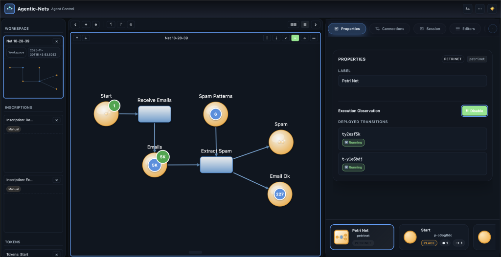 Agentic-Nets / AgenticOS is my approach to bringing Petri nets, agents, remote executors and practical automation together in one visual model. It is designed so that complex flows and agents are observable, testable, composable – and evolvable at runtime.