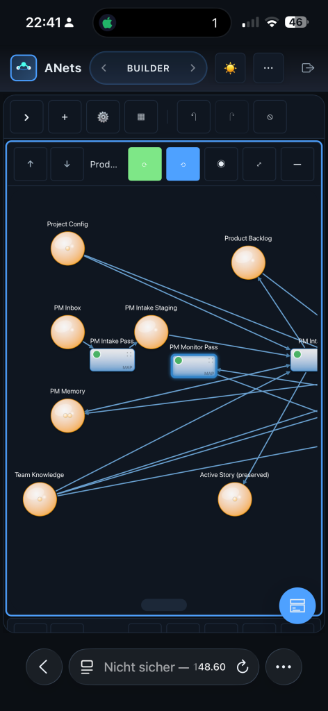 Under the hood, AgenticNetOS does something no chatbot does: it structures the work as a flow graph. Places hold state. Transitions do work. Arcs define the rules. This gives us capabilities that plain LLM loops simply cannot match.